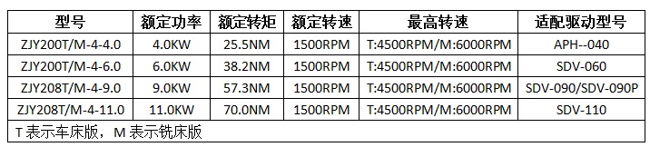 ZJY系列交流異步主軸電機(jī)基本參數(shù)入下表:
