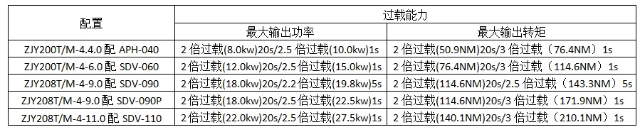 整套配置具有高轉(zhuǎn)矩及高功率過載輸出能力: